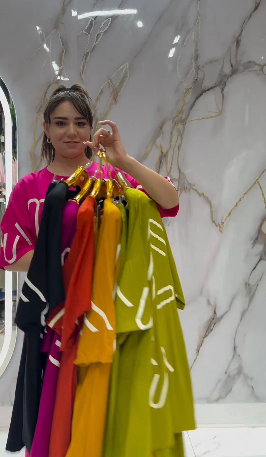 ✨ Trendy drop shoulder design with bold prints 🧵 Soft fleece fabric – cozy & breathable 🎀 Adjustable elastic waist for perfect fit 💸 Wholesale price: Rs.4000 only!