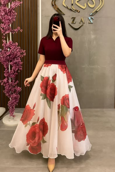 Presenting our Rose Elegance 3-Piece Maxi Set, featuring a rich maroon top paired with a flowy floral maxi skirt